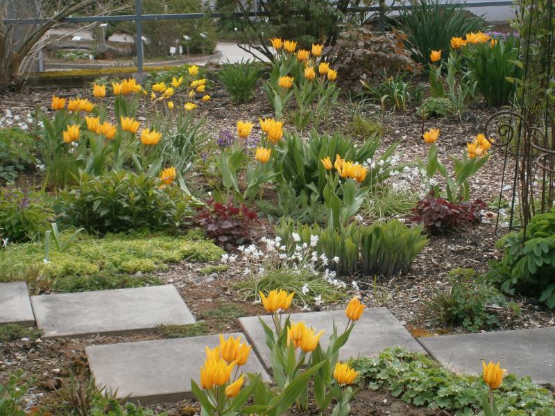 Als am Osterwochenende mal die Sonne schien, begannen sich die ersten Knospen der nächsten Arten zu öffnen: Tulipa whittallii …
