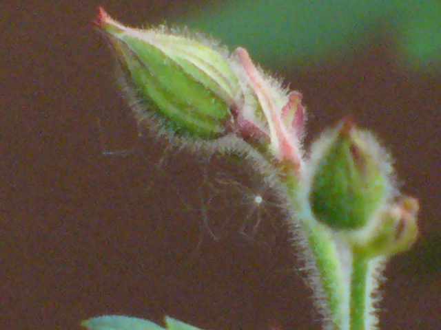 Knospen eines Gernaiums an denen ein Flugsamen hängen geblieben ist