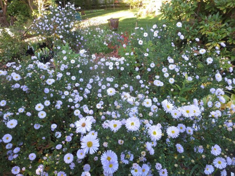 Diese Aster wächst bei mir in etwa 1 Meter Höhe, im Beet daneben steht auch so eine Aster, aber als Bodendecker.