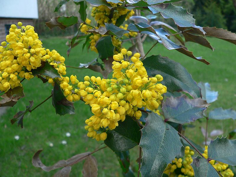 Du kennst Mahonien nicht? Die sind doch ein besseres Unkraut. In meinem Garten werden sie regelmäßig von den Vögeln ausgesät. Die Beeren sind zum Rohessen nicht geeignet, aber man kann leckere Marmeladen daraus machen.