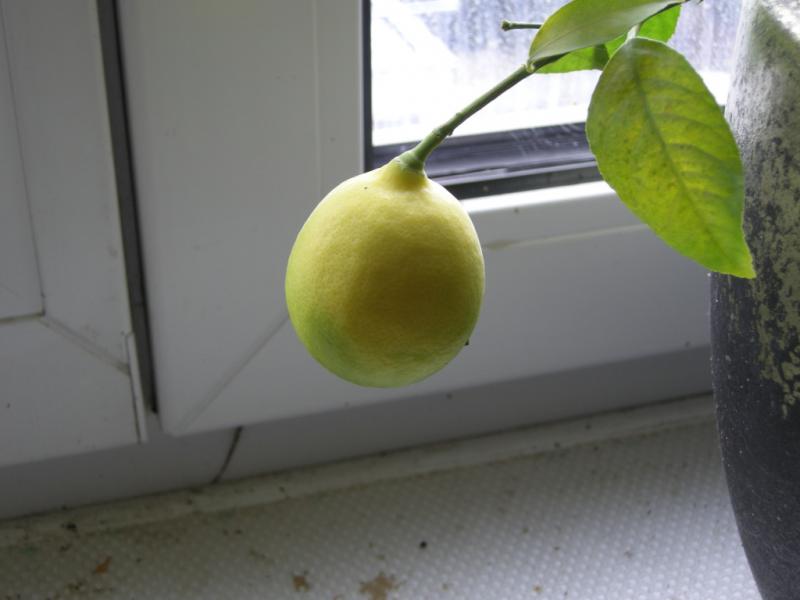 Als ich dieses kleine Bäumchen vor zwei Jahren bei Lidl kaufte, stand auf der Schleife, dass es ein Kalamondin ist, der sich besonders gut für die Haltung im Wohnzimmer eignet. Heuer stand es den Sommer über im Garten. Von mehreren Blüten sind die meisten abgefallen, aber eine hat eine Frucht ausgebildet ... die für mich im Laufe der Zeit immer mehr nach Zitrone aussieht ;-) Jetzt steht es übrigens nicht in der Wohnung, sondern an der Dachbodenstiege.