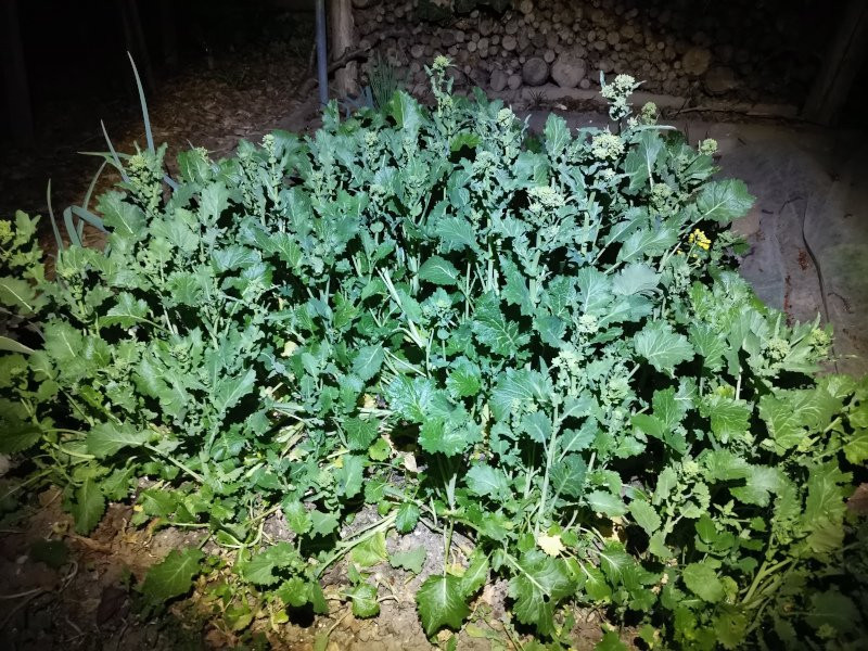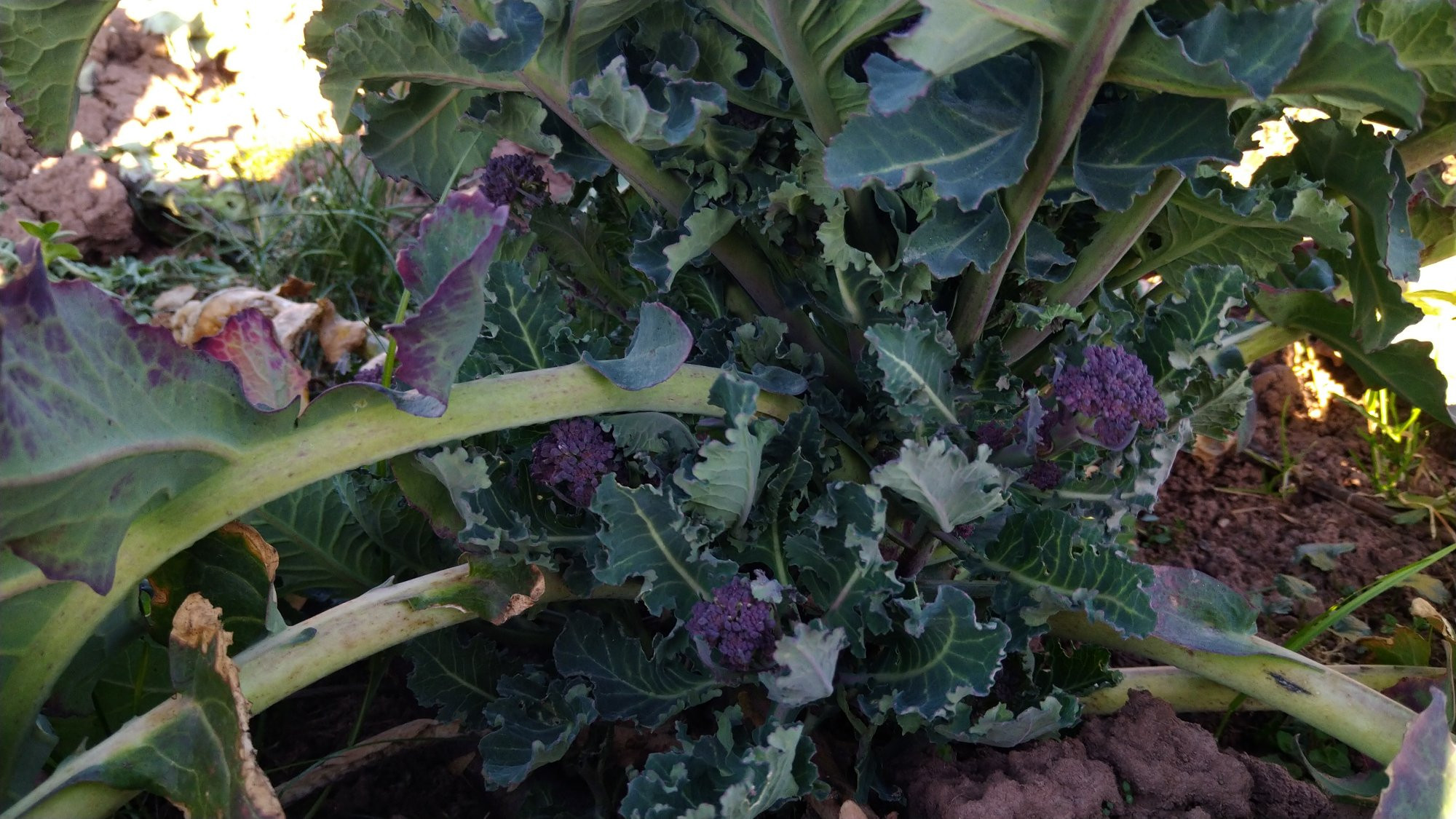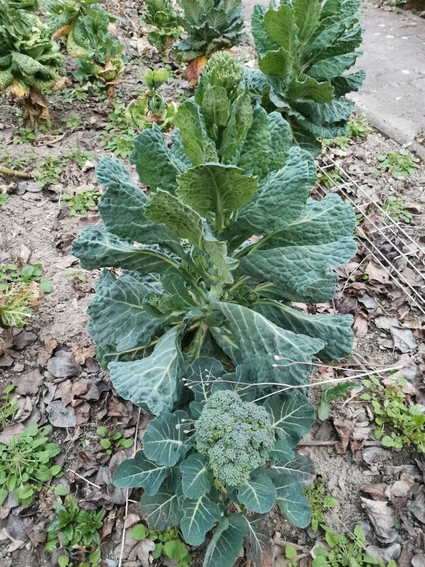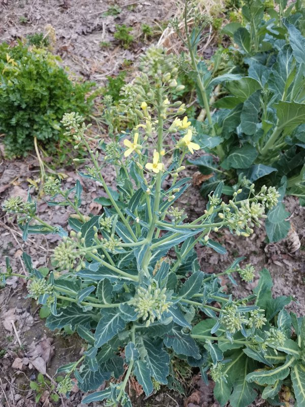 Ein Brokkoli vom Vorjahr, da wollte er nicht und ist mehrfach verhockt bzw abgefressen worden, hats jetzt aber doch noch geschafft. Kann geerntet werden.