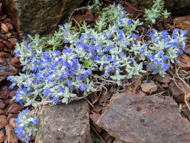 Veronica bombycina ssp. bolkardagensis ist durch eine kleine Abdeckung geschützt... deshalb ein Foto...auch wenn sie langsam rückwärts wächst.