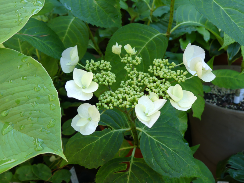 Vorletztes Jahr von cornishsnow als Steckling bekommen, blüht nun Hydrangea macrophylla 'Veitchii'.