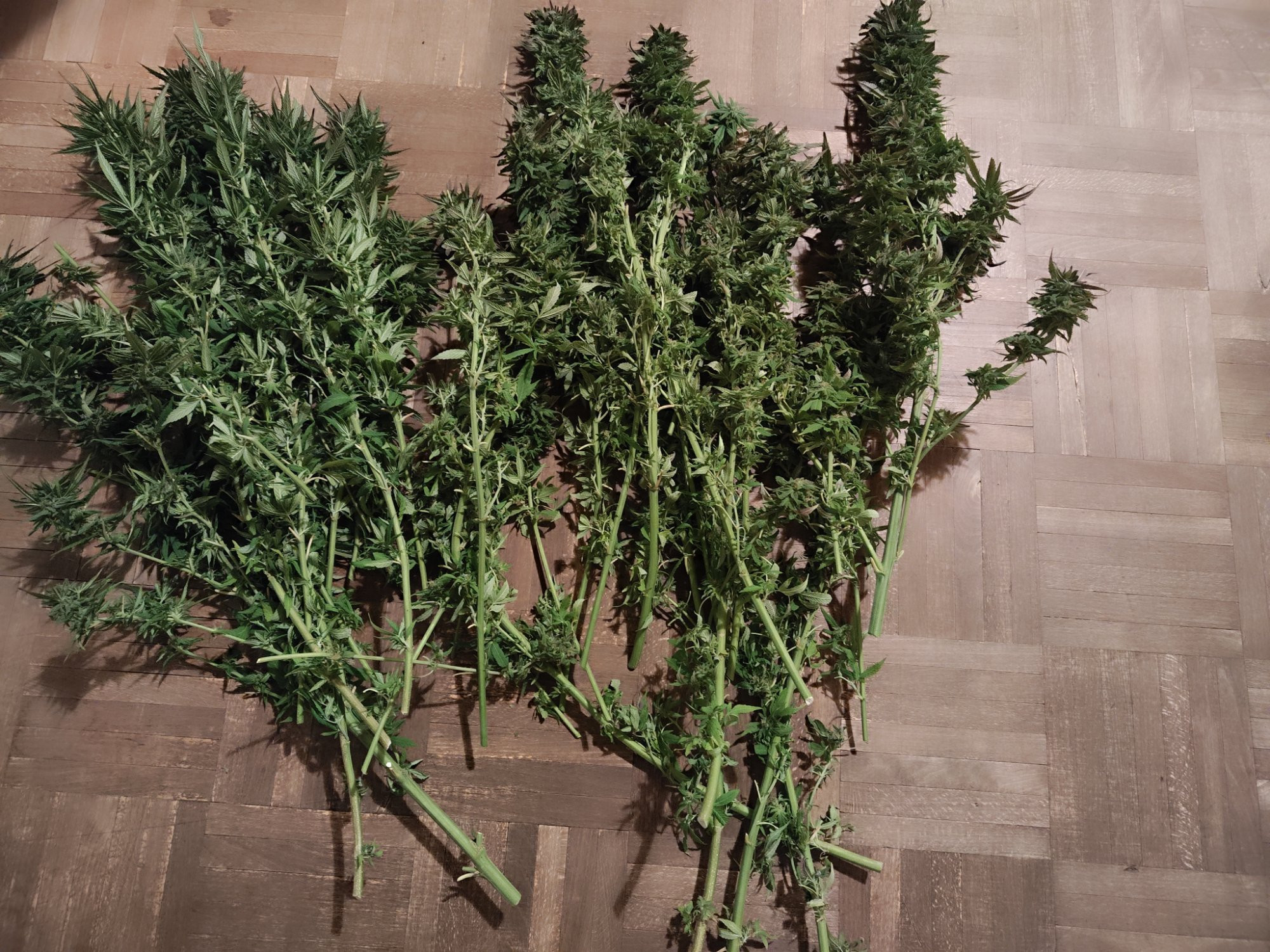 Ich habe gestern geerntet. Die Pflanzen standen bis vor 2 Wochen im Topf an der Hauswand. Dann habe ich sie ins Gewächshaus verfrachtet. Jetzt waren die ersten Blüten komplett braun, die anderen von milchig bis gelb und die großen Blätter begannen zu welken.