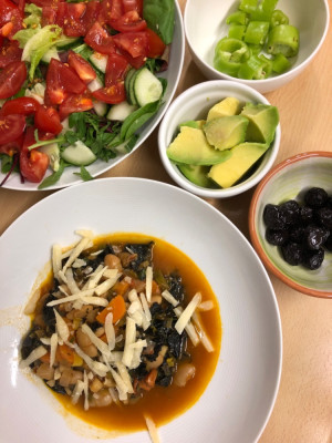 Nach ausgeprägtem Unwohlsein habe ich meine Asia Küche wieder aktiviert, Dienstag Hokkaido Suppe mit Möhren , Ingwer, Kokosmilch, Fischsauce etc