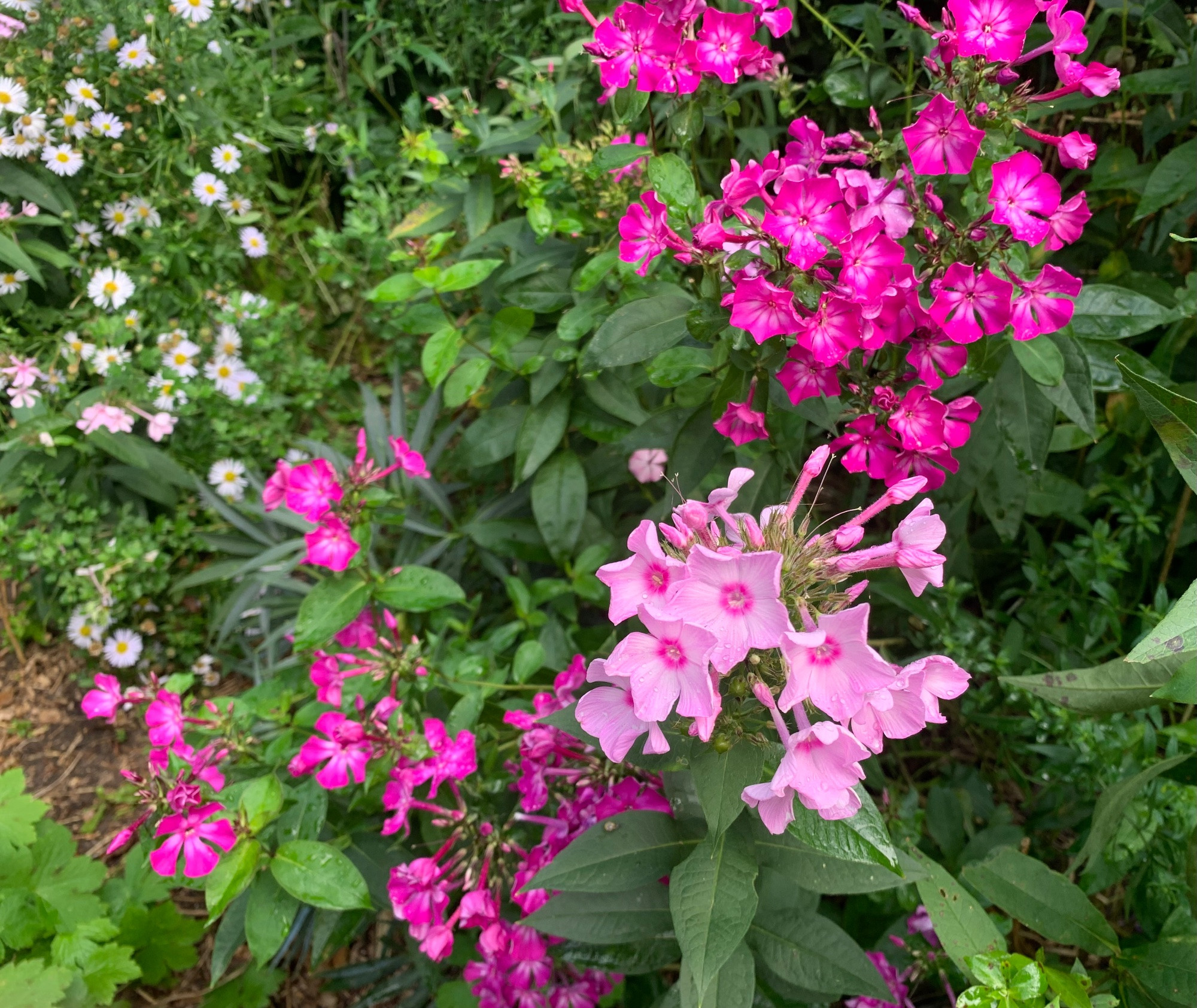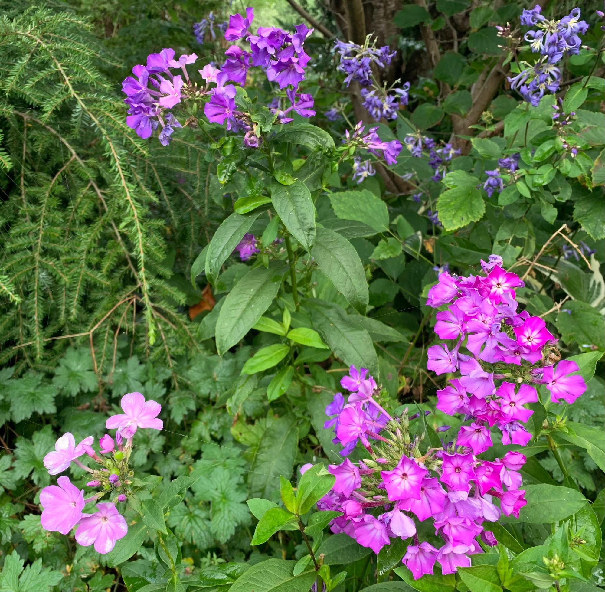 Noch immer recht schön: Phlox Minnehaha. Kommt im Halbschatten mit Wurzeldruck zurecht und blüht dazu viele Wochen lang. Was will man mehr.