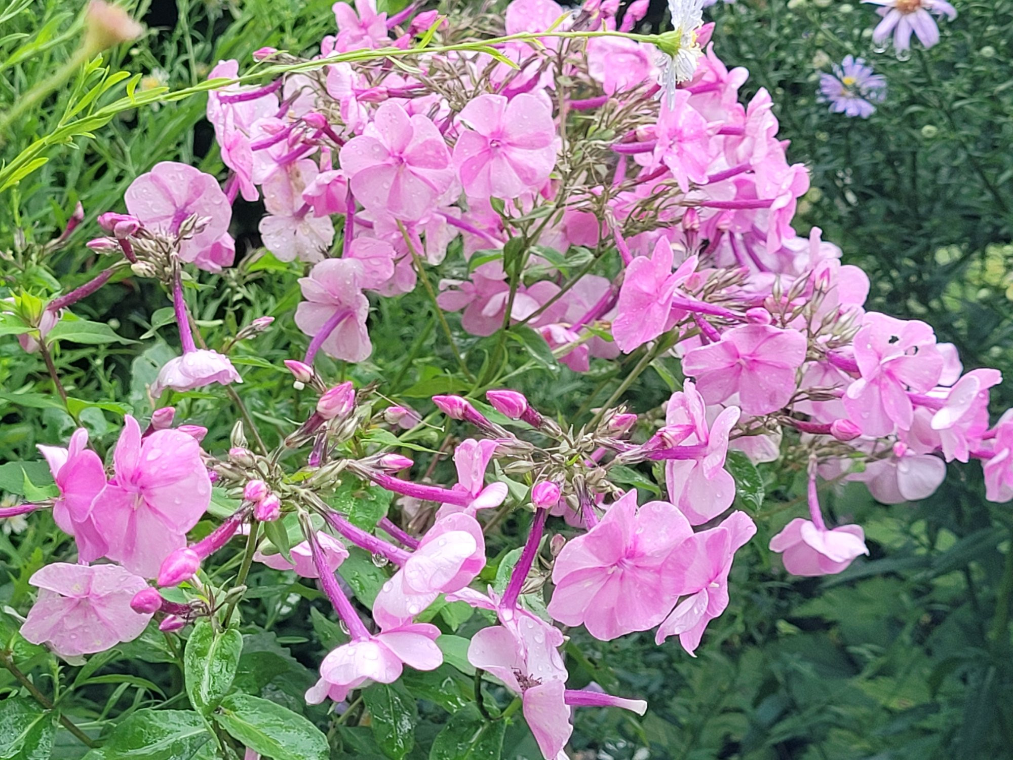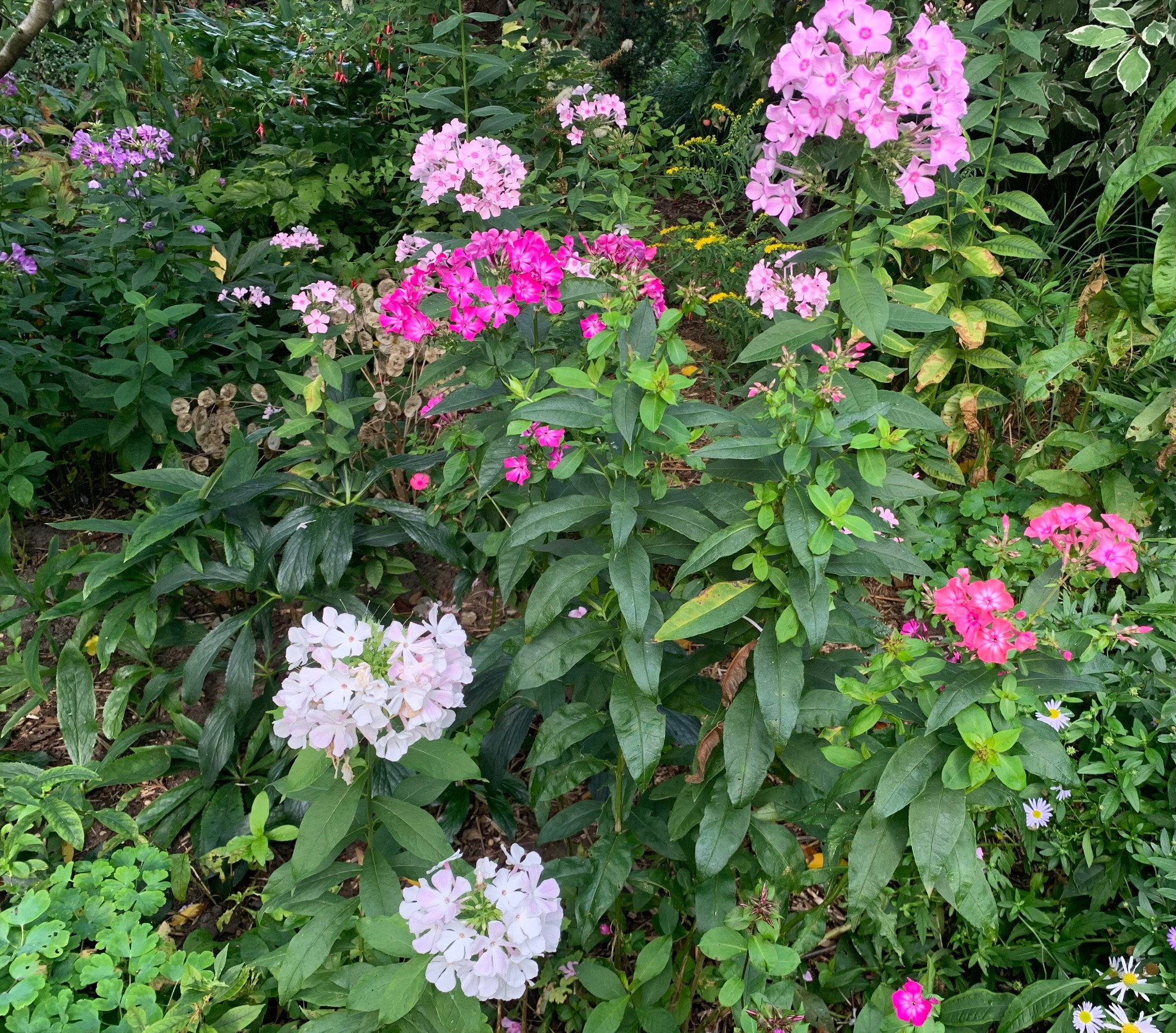 ‚Lavender Light’ sieht ja interessant aus, einmal weil so spät mit der Blüte, aber auch durch das leicht abgewandelte Weiß: die harten Phloxfarben sind oft schwer zu kombinieren, am ehesten geht da noch Weiß. Und wenn das dann nicht das typische Persilweiß ist, finde ich das definitiv ein Bonus: Danke fürs Zeigen!