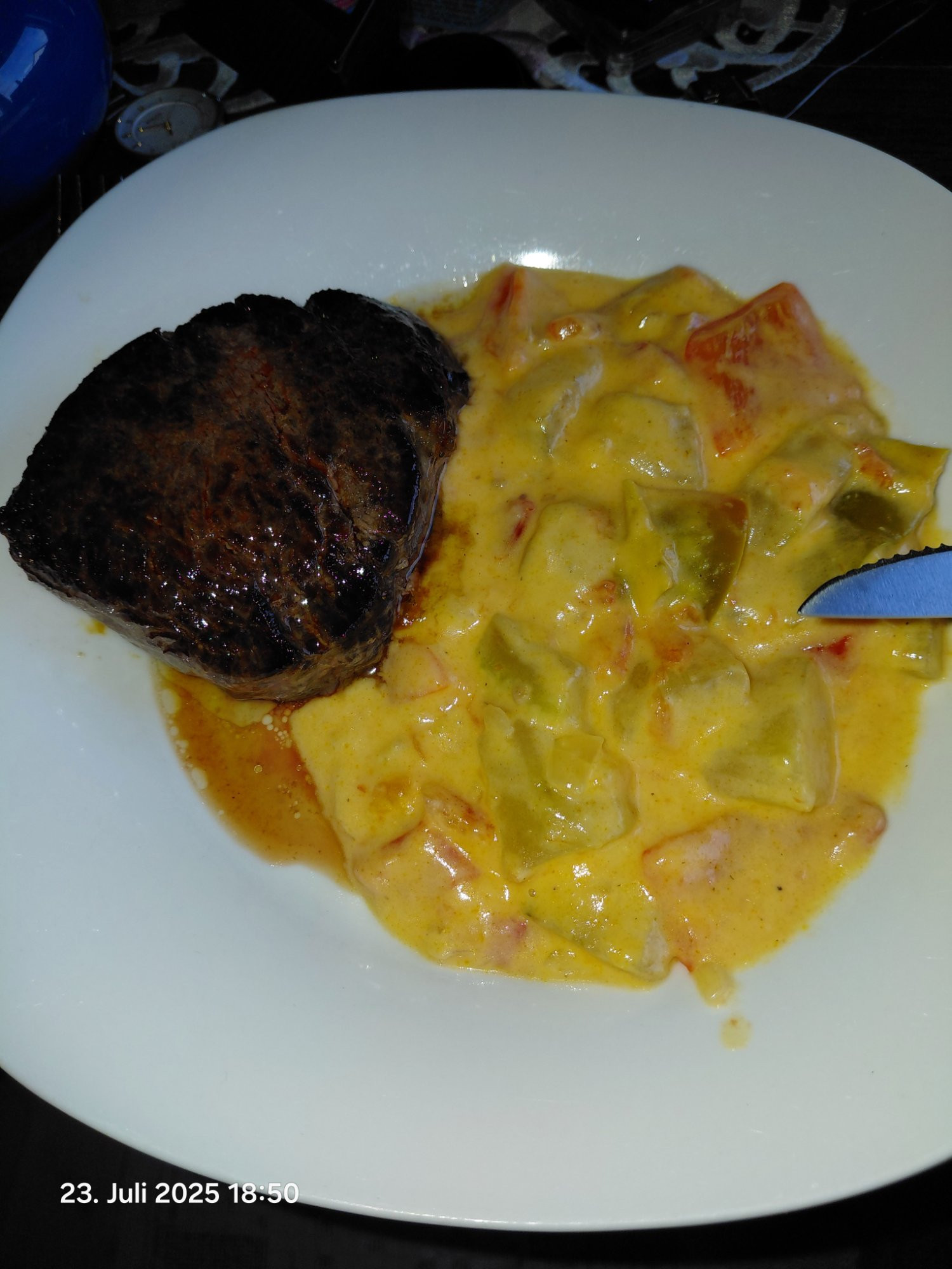 Nachher gibt's Möhren eintopf mit geräucherter dicke Rippe, das schafft nur Netti: jetzt draußen Fleisch zu schneiden. Was für ein Glück, das ich keine Angst vor Wespen habe. Innerhalb von Sekunden hatte ich jede Menge um mich rum. Sofort alles rein geräumt, jetzt suchen die Viecher nach ihrer Beute...