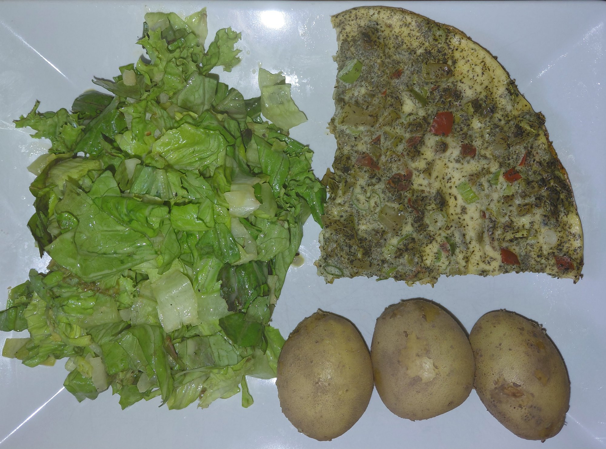 Neue Kartoffeln, Gartensalat und Zucchiniomelette