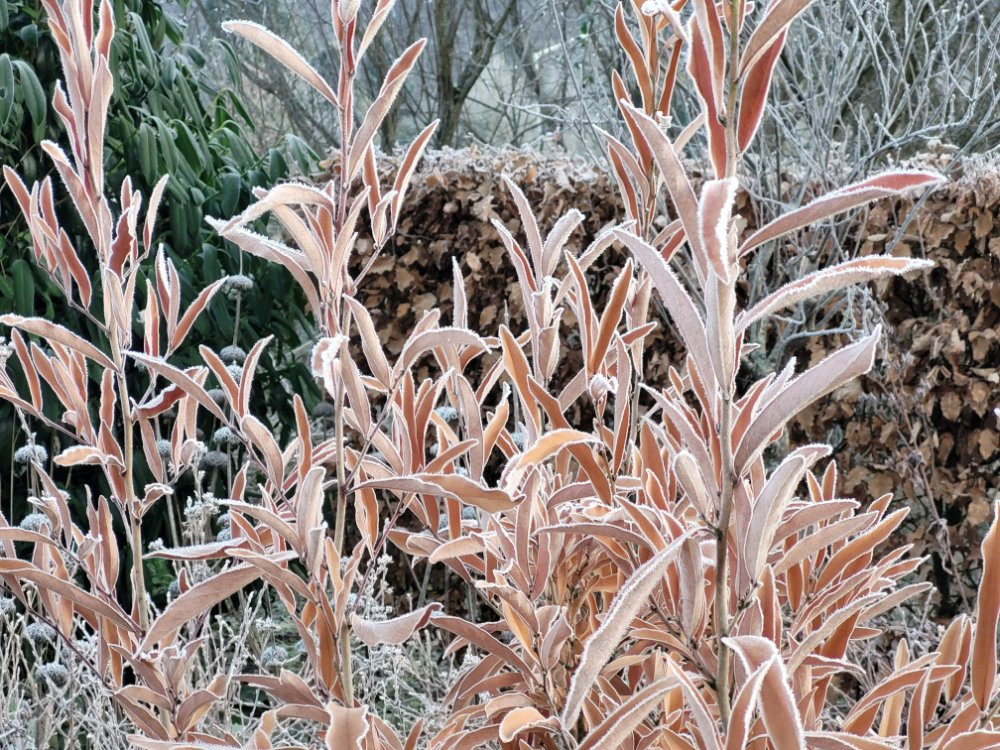 *) Physocarpus 'Little Devil', Physocarpus 'Magical Sweet Cherry Tea' o. ä., Callicarpa bodinieri 'Pearl Glam', Cornus sanguinea 'Anny's Winter Orange', Weigela florida 'Ebony & Ivory', Caryopteris x clandonensis 'Heavenly Blue', und eine schon ewig dort stehende Spiraea x cinarea 'Grefsheim', die ich unbedingt mal wieder auf den Stock setzen muss.