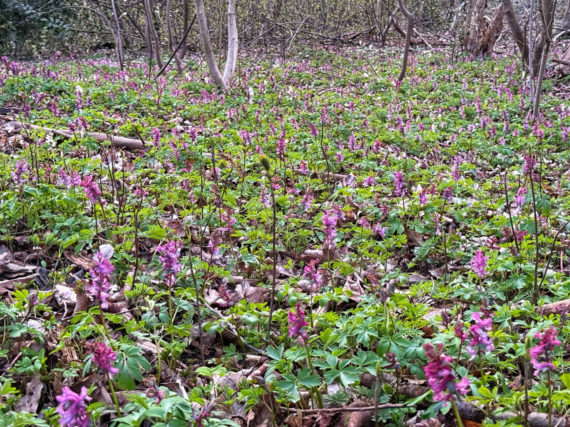 Gibt noch anderes dort, am schönsten sind gerade das Milzkraut und vor allem die Hohlen Lerchensporne, deren rötiche Farben dort auf mich weniger trüb als andernorts wirken.