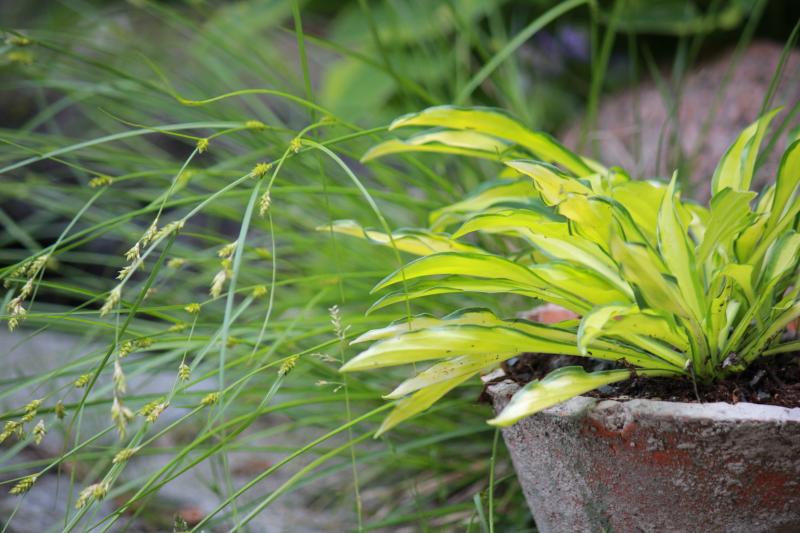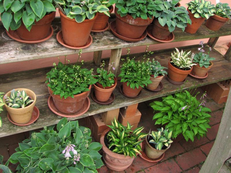 Die zwergigen getopften Hostas benötigen ja nur ein kleines Plätzchen irgendwo am Beetrand, Guda...