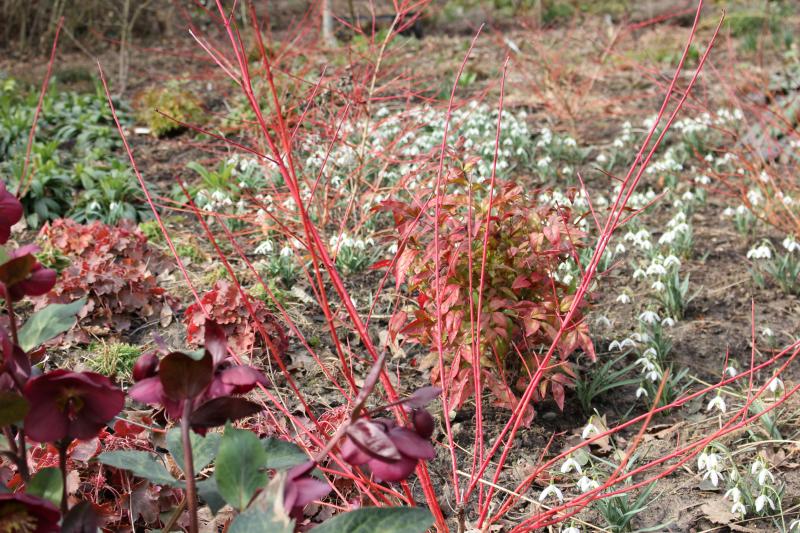 Die Trockenmauer ist ja wirklich sehr schön geworden! :D Die "Igelburg" dürfte eine Bank sein, wie Markus eine ganze Menge überall im Garten stehen hat, damit man selbigen auch beim entspannten Sitzen bewundern kann. :) Und so viele Schneeglöckchen, da sind die "weißen Wiesen" ja nicht weit. Herrlich auch die Cyclamen, Helleboren, Erica, Cornus, ach, einfach alles. ;)