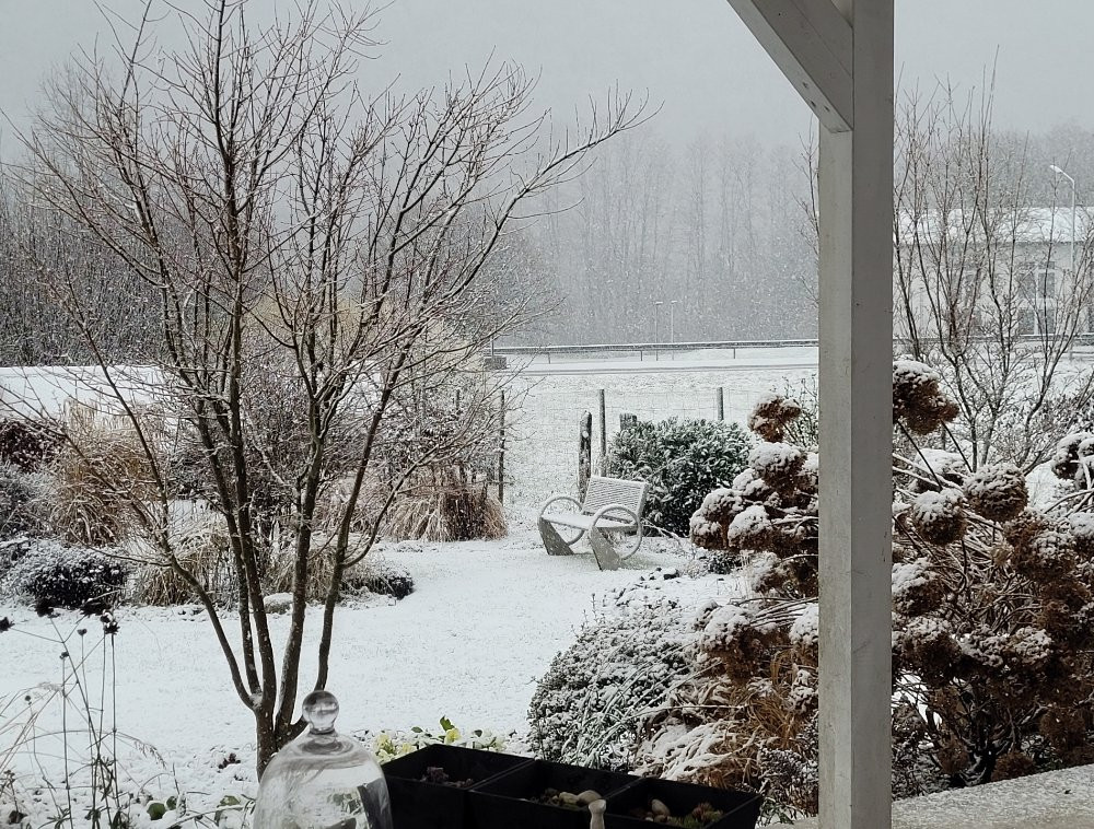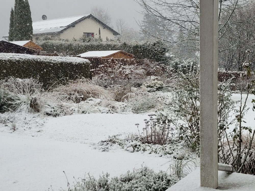 Nur ein kleiner Überblick, wieder von der Terrasse aus gesehen und daher fotografisch eher mangelhaft. Aber trotzdem... morgen könnte die weiße Pracht schon wieder weg sein.
