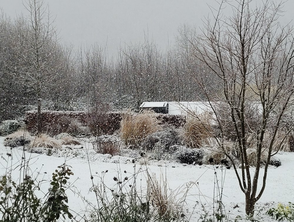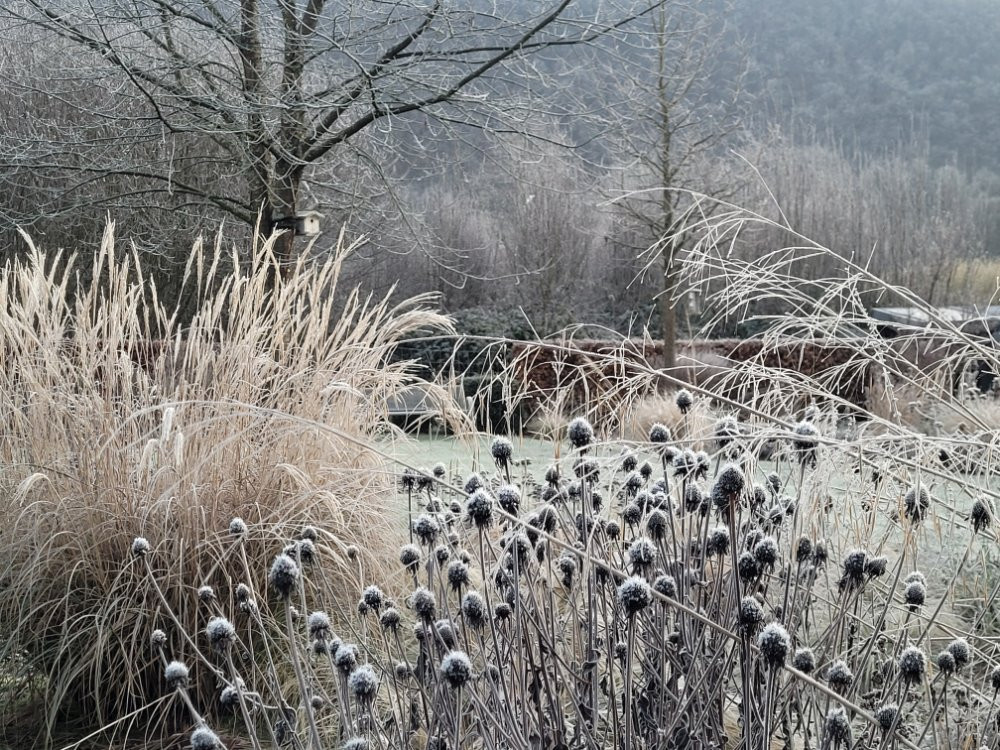 Ja, gut daß trotz des Dauerregens im November noch einige starke Strukturen von Gräsern und Stauden übrig geblieben sind.