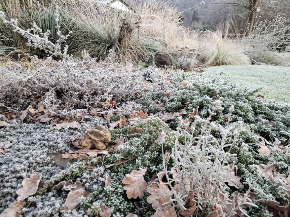 Wie schön dein Garten immer wieder aussieht! Und jetzt besonders unter der Reifschicht - wunderschön! So friedlich!