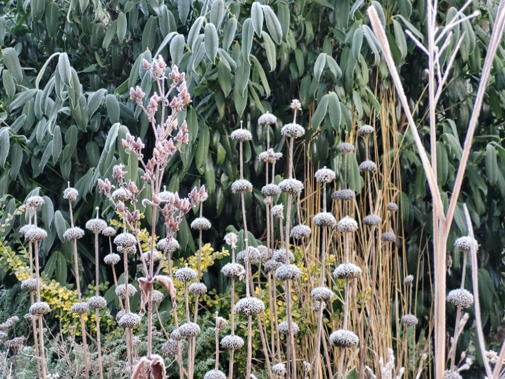 Die Winterbeete im Morgengrauen im Detail... was ist überhaupt noch übrig