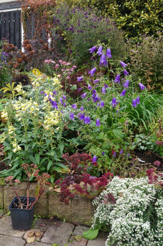 stimmt, obwohl es mir zu bunt ist, ich stelle mir gerade vor wie es aussähe, wenn alle roten Töne weg wären und dieses köstliche Gelb der Digitalis mit dem tiefen Violettblau der Astern zusammen fände. Zu gelbem Laub der Helleboren und den blauen Glockenblumen und der weißen Matte der Snow Flurry wäre das perfekt! Aber sicher bin ich, dass "perfekt" für enaira keine Vorgabe oder kein Ziel ist. Für enaira ist es ganz genau so richtig, wie es da so gerade ist.