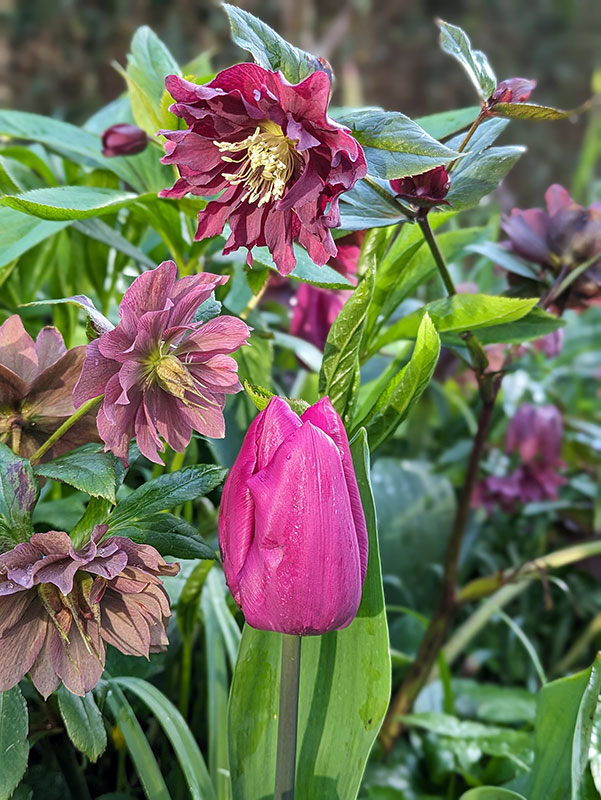 Ich mag Tulpen schon sehr als erkennbare Gruppen, durchaus auch Grüppchen mit verschiedenen Farben benachbart stehen. Aber drum herum und/oder dazwischen müssen andere Stauden, Gehölze oder Zwiebelpflanzen stehen, die sichtbar andere Strukturen ins Gesamtbild einbringen. Ein reines Tulpenbeet wäre mir viel zu eintönig. Aber das würde mir wahrscheinlich auch mit großen Ansammlungen von Iris oder Taglilien ähnlich gehen. Ich freue mich eben an gemischten und gut komponierten Beeten mehr.