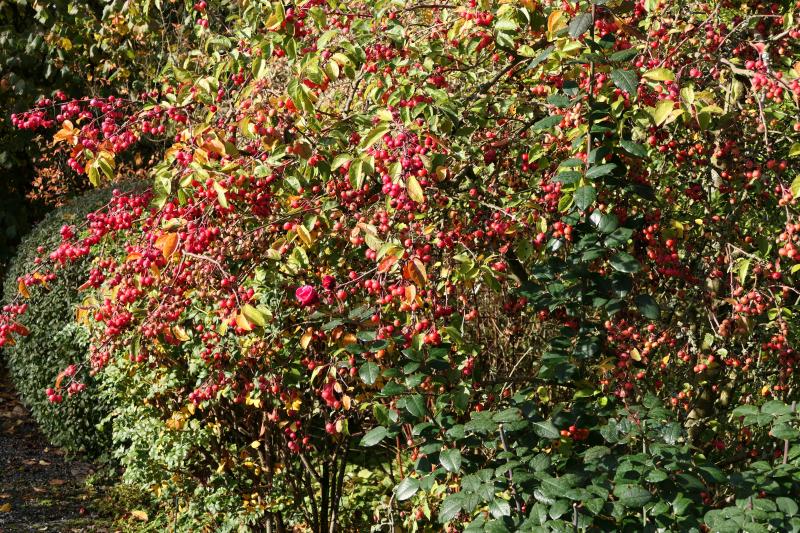 Die Parrotia hat schon viel vom bunten Laub verloren.