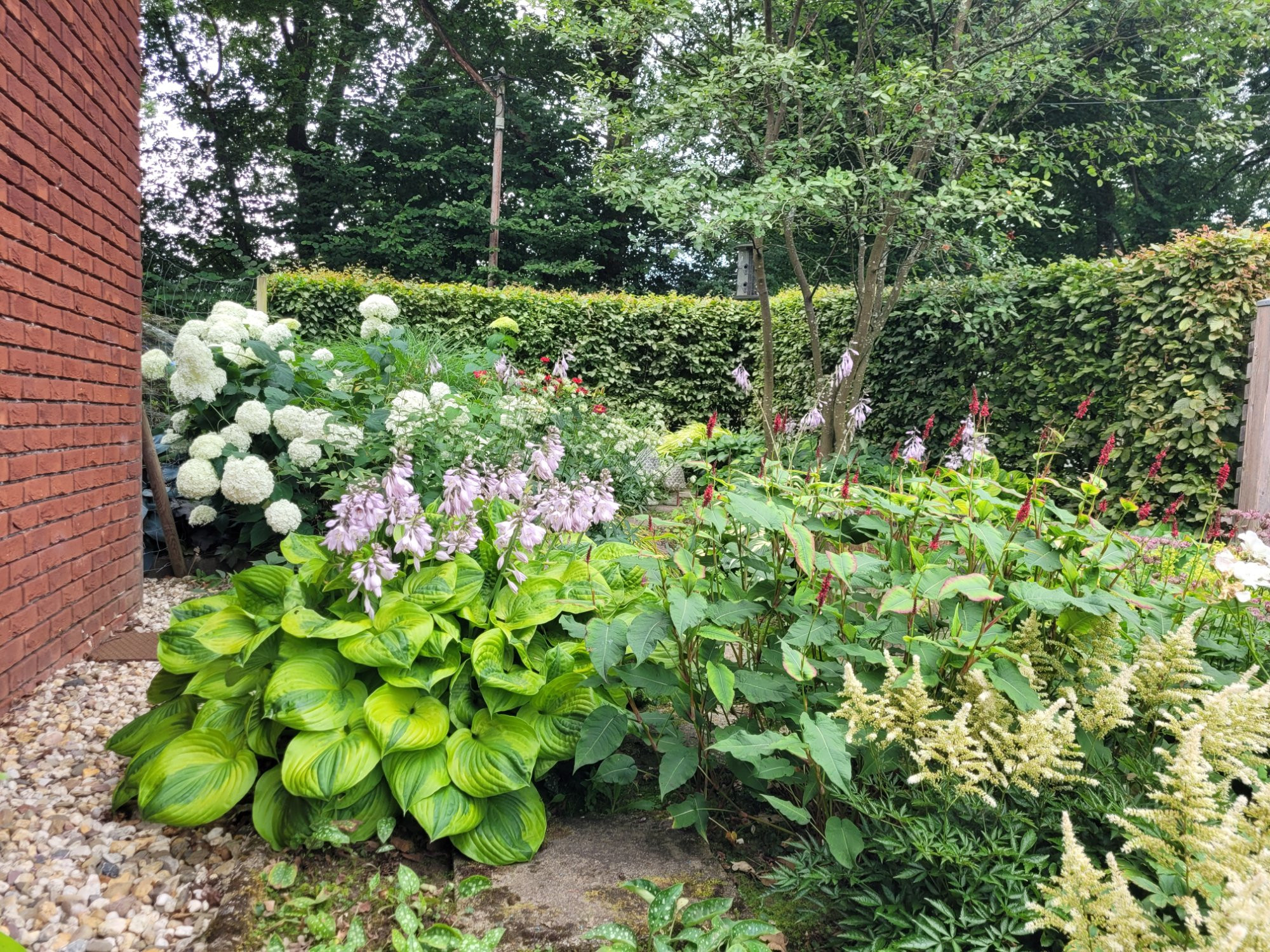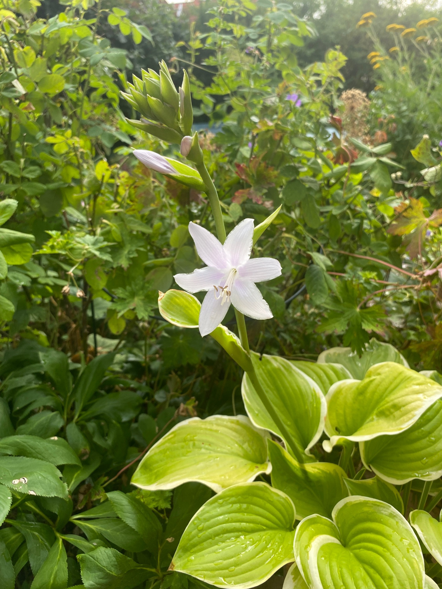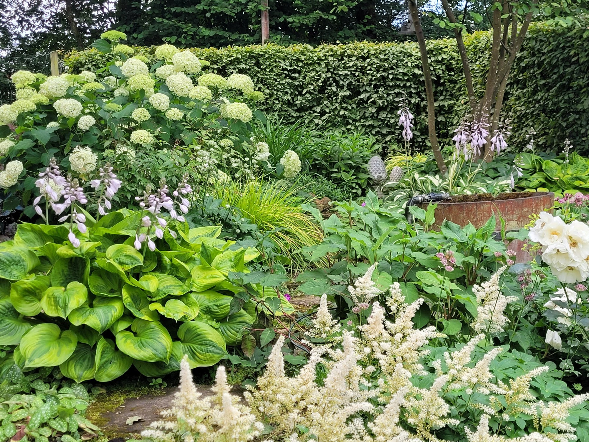 Man hört bisher wenig von den Hosta, obwohl sie in diesem Jahr wunderschön gesund und schon einige am Verblühen sind.