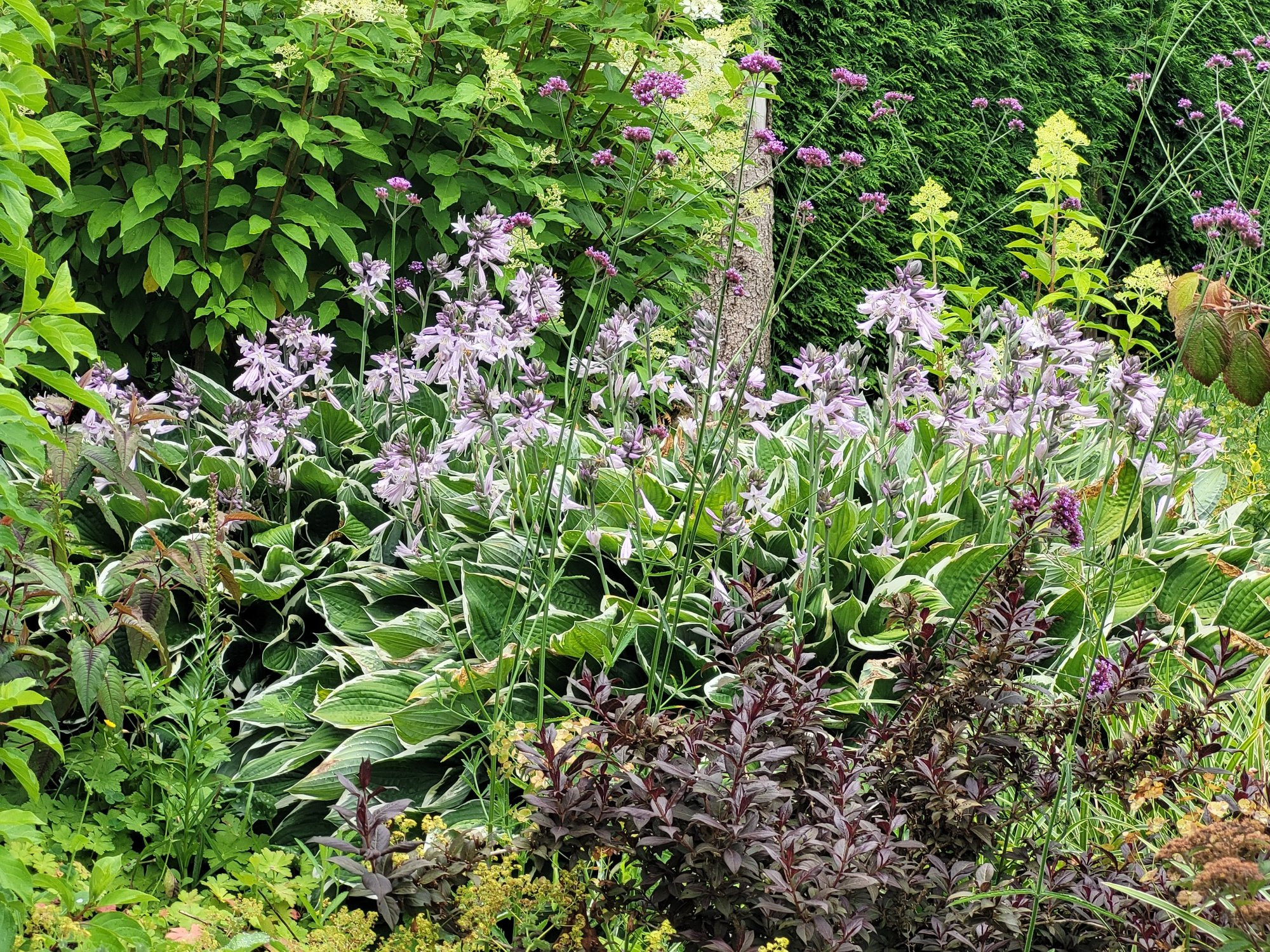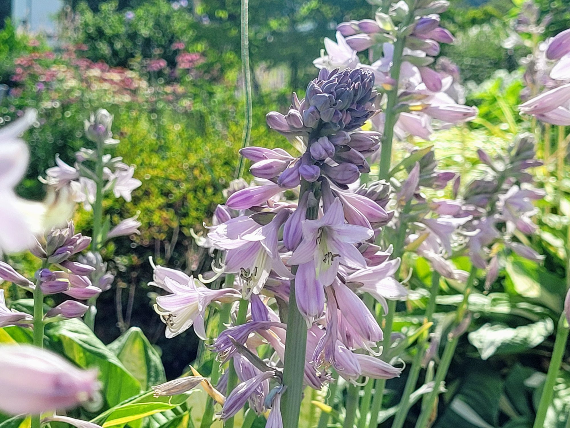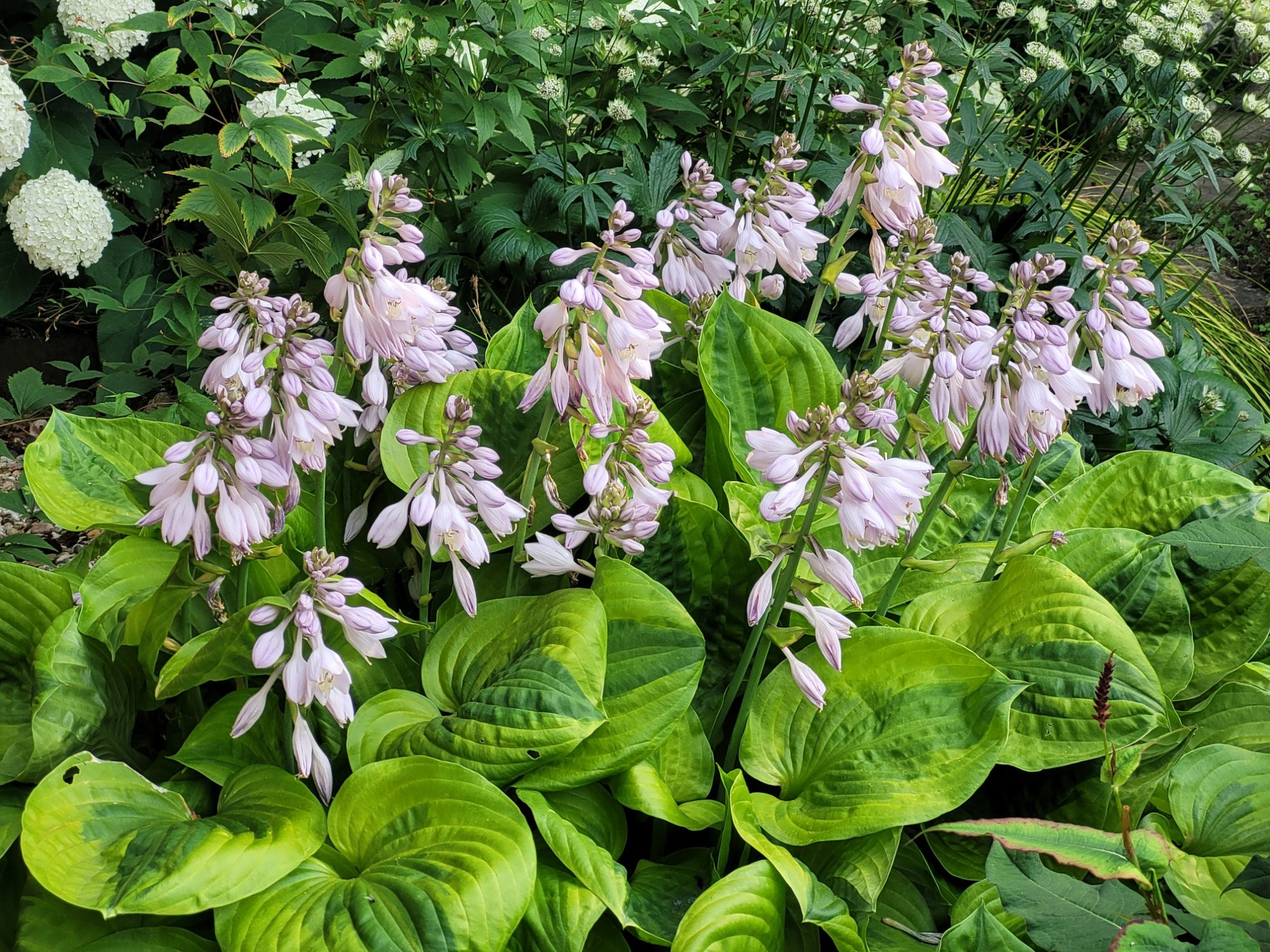Nochmal Hosta... nun blühen 'Gypsy Rose' und - im Hintergrund zu sehen - auch 'Risky Business'.