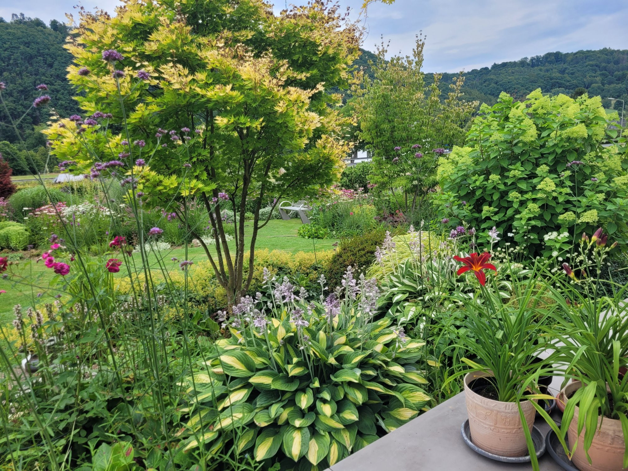 Man hört bisher wenig von den Hosta, obwohl sie in diesem Jahr wunderschön gesund und schon einige am Verblühen sind.