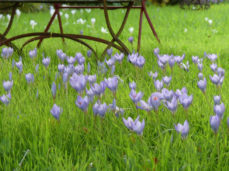An einer Stelle sind im benachbarten Park in den letzten Jahren die Schneeglöckchen fast ganz verschwunden und Winterlinge rar geworden. Statt dessen machen sich Crocus tommasinianus und Crocus kotschyanus breit. Der Untergrund ist sandig mit einer dünnen Humusauflage, der Standort sehr trocken und tagsüber trotz der Bäume auch mal in voller Sonne.
