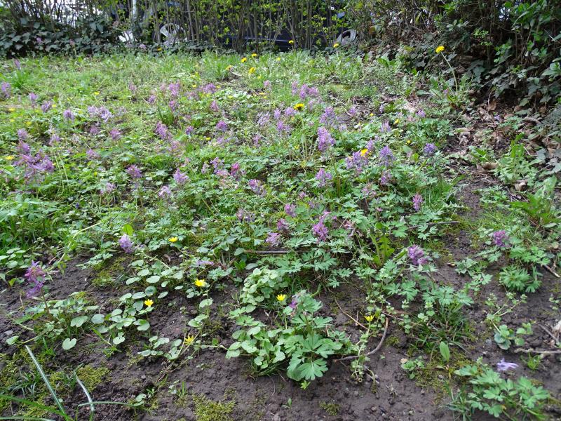 Hier mal C.solida und Scharbockskraut als Massenbestand hinter dem Mülltonnenstandplatz