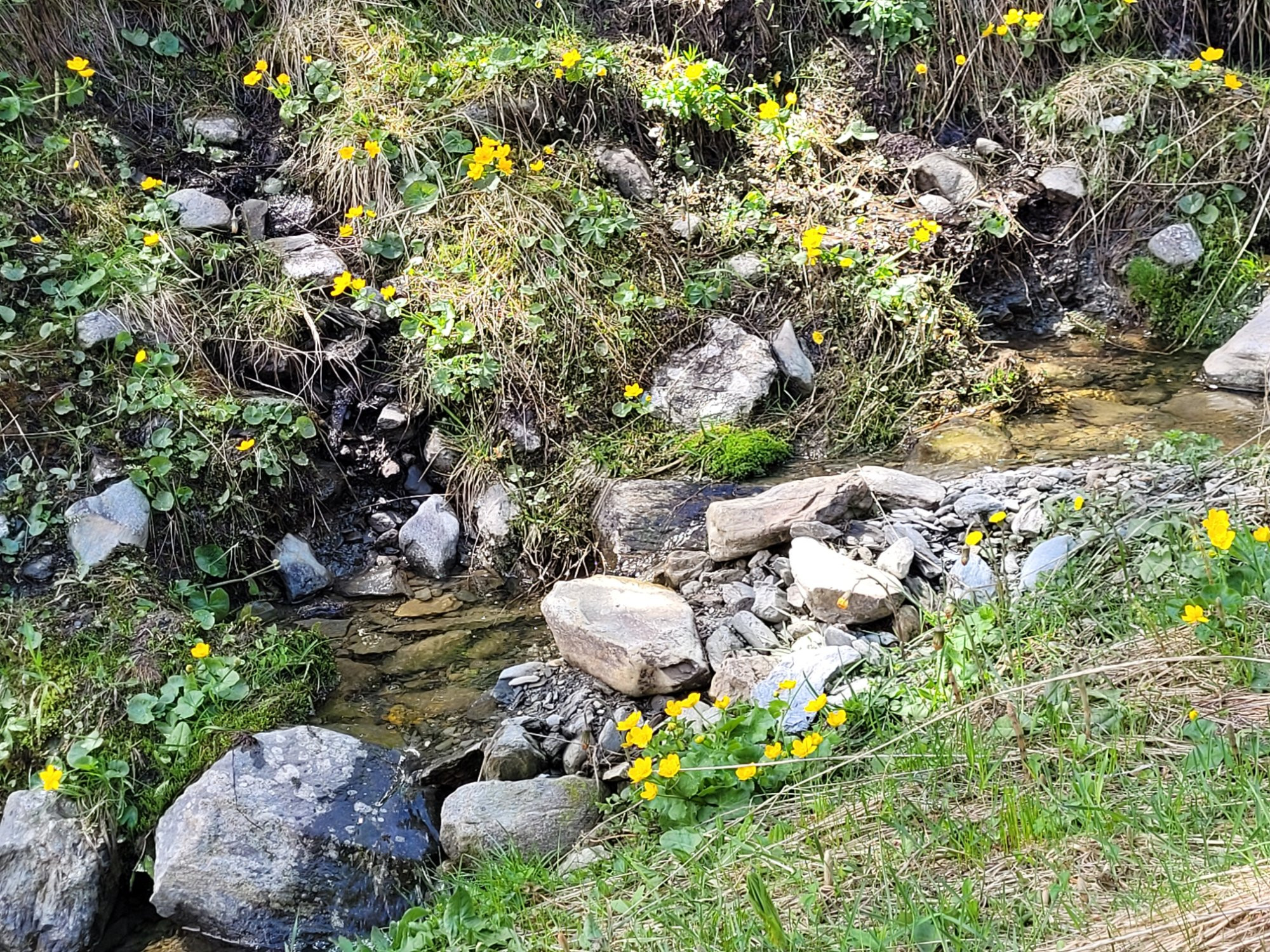 Edit: Eine Cardamine ? Und Sumpfdotterblumen.