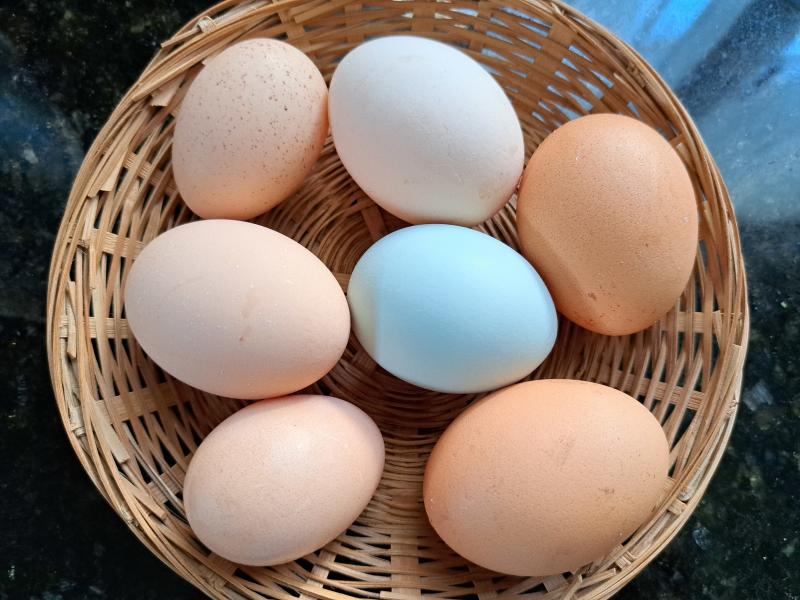 Der u.a. Eier verkaufende Bauer hat wohl keine entsprechenden Viecher mehr. Nur noch normalfarbige Eier - weiß und braun halt. Langweilig.