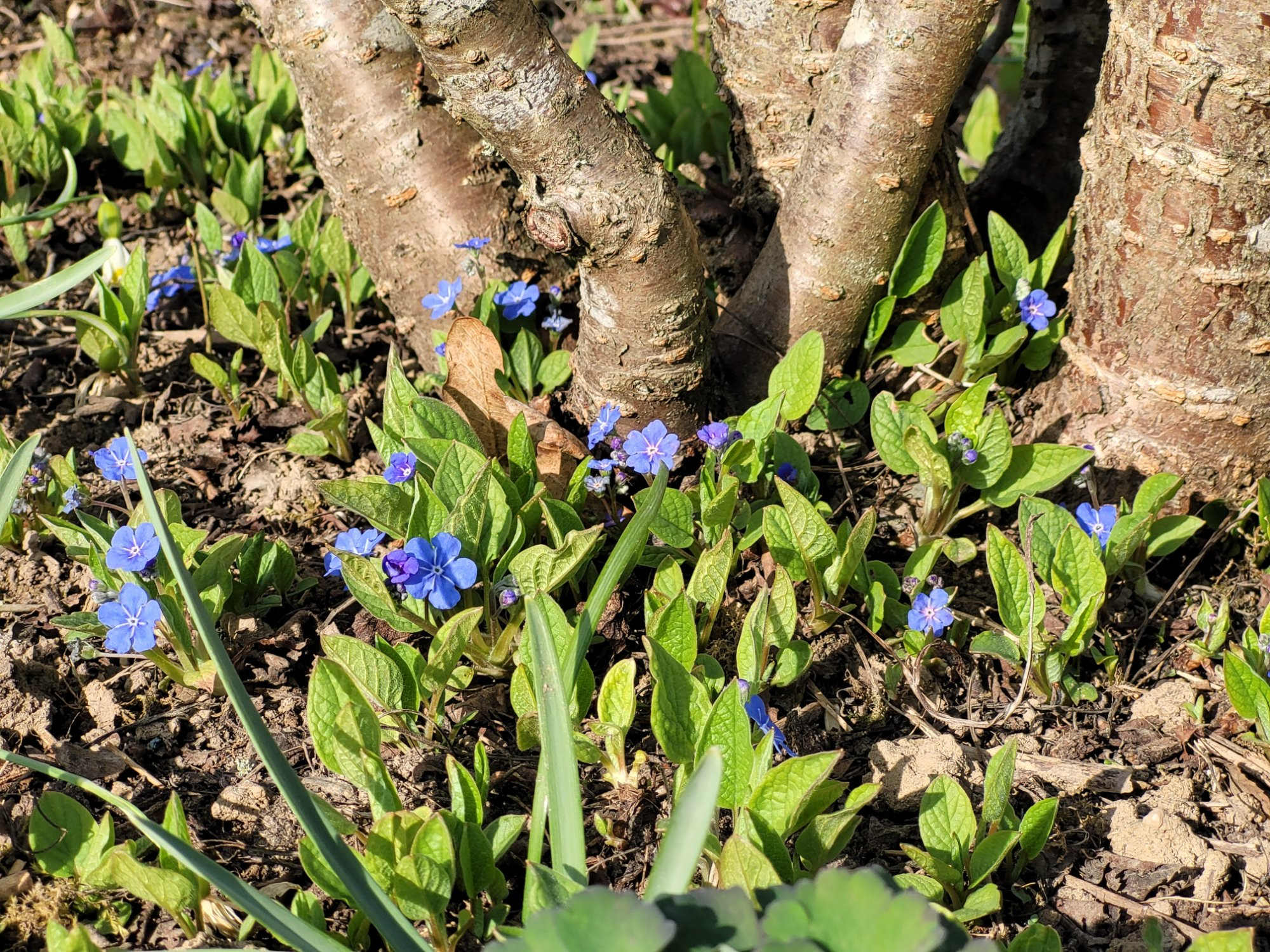 Niedliche Buschwindröschen und üppige Selbstaussaat der Hornveilchen...