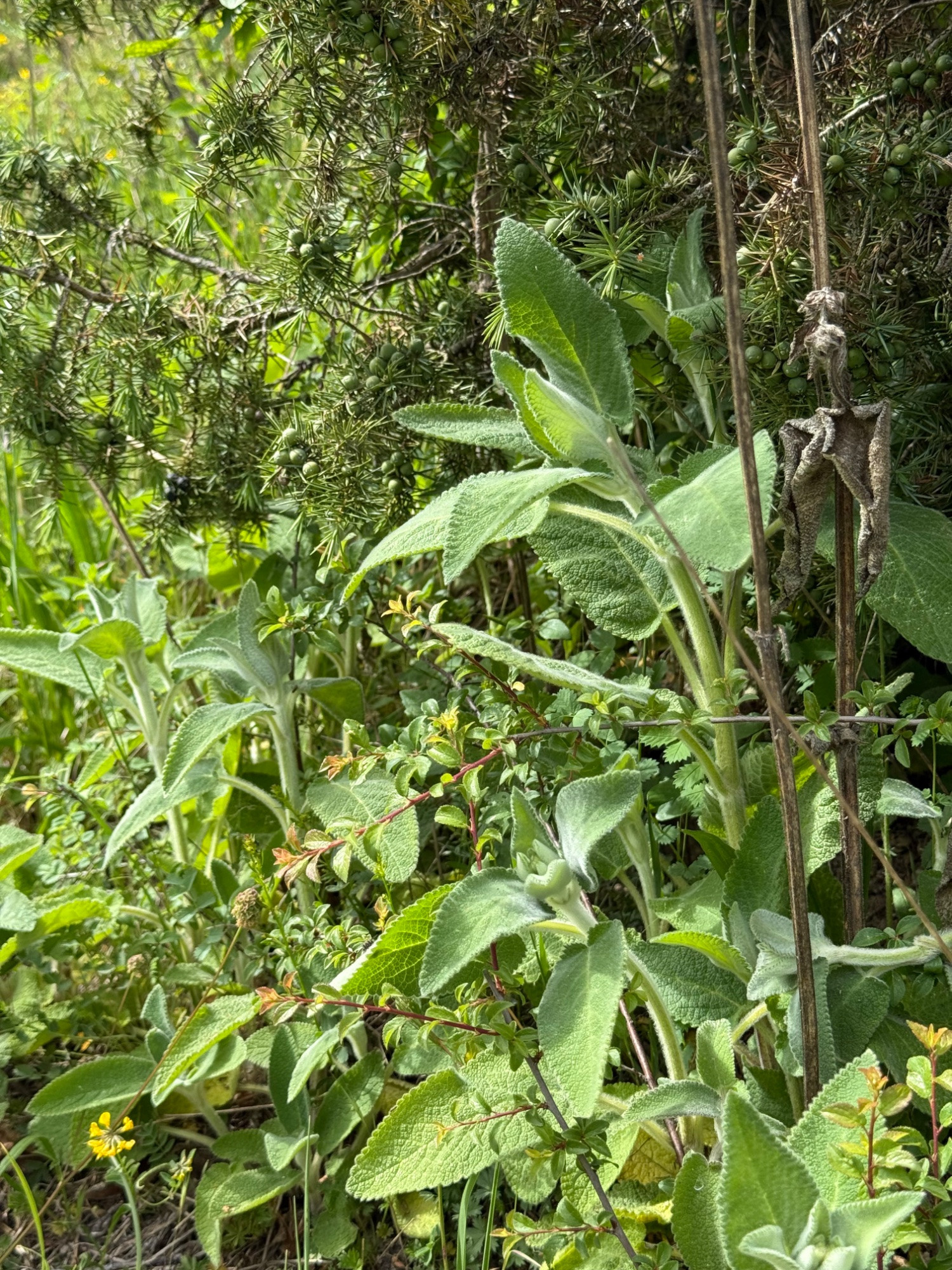 Stachys Germanica unter einem Wacholder: