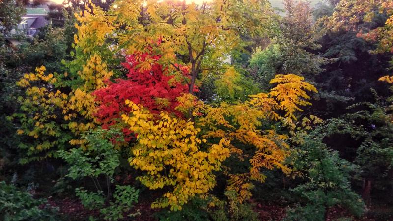 Vom Stiegenhausfenster im dritten Stock aus fotografiert. Die Weichsel (Sauerkirsche) hat noch nie so schön gefärbt wie heuer :D