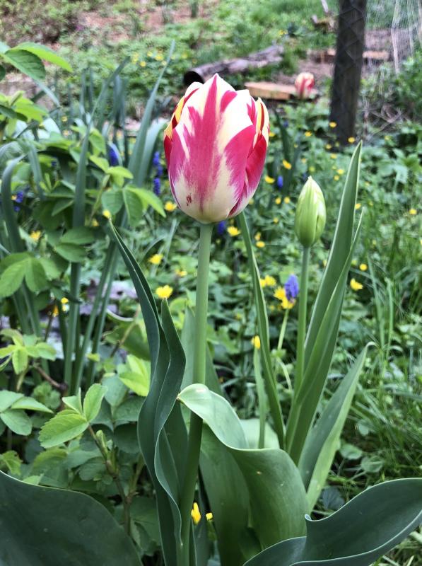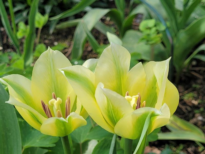 Hier sind es die Viridiflora, die ganz gut wiederkommen wenn sie nicht von Wühlmäusen entdeckt werden. Hier gibt es zurzeit aber leider nur noch diese Gruppe 'Spring Green', etwa 6 Pflanzen. Alle anderen haben sie schon gefunden... :-X