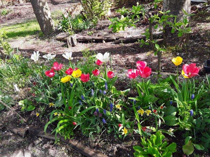 Hier gibt es schon sehr alte Exemplare noch von Vor- Vorbesitzern, dh mehr als 20 Jahren. Alles späte Tulpen, nicht besonders schön, wie zB diese roten. Sehr knallig, aber ich lasse sie gewähren, aus Respekt  ;)
