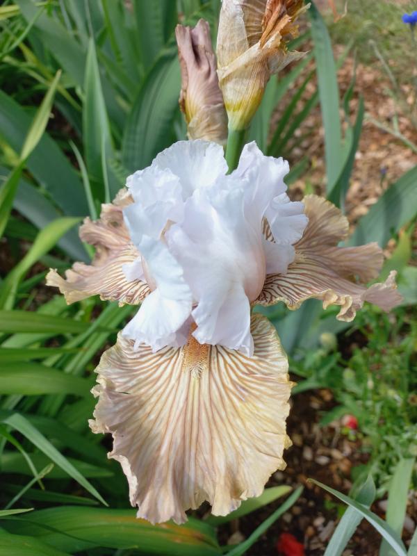 Da muß ich noch kurz was zu sagen : ich hatte in 2020 u.a. eine Ring Pop bekommen, die nur eine einzige Wurzel von 1 cm "Länge" dran hatte, da war ich schon enttäuscht. Ok, trotzdem ins neue Irisbeet gepflanzt und ab und zu kontrolliert. Sie wuchs und wuchs nicht an, wackelte immer, trotz erneuter Erdanhäufung.