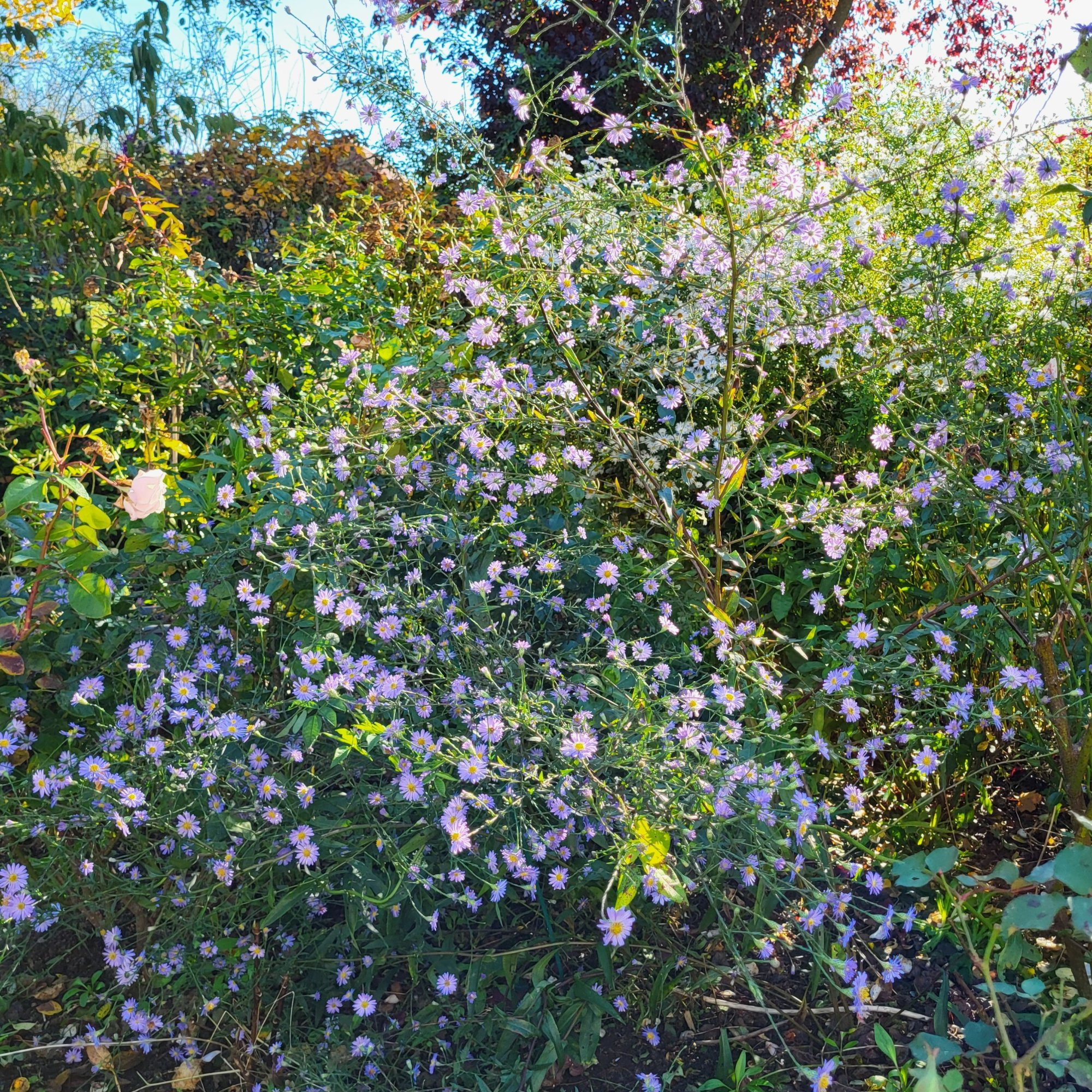 Eigener Sämling der vielgeschmähten novi- belgii, ich mag die sehr, blüht aktuell und ist 2-3 Wochen später als alle anderen hier, die schon nicht mehr ganz so frisch sind...