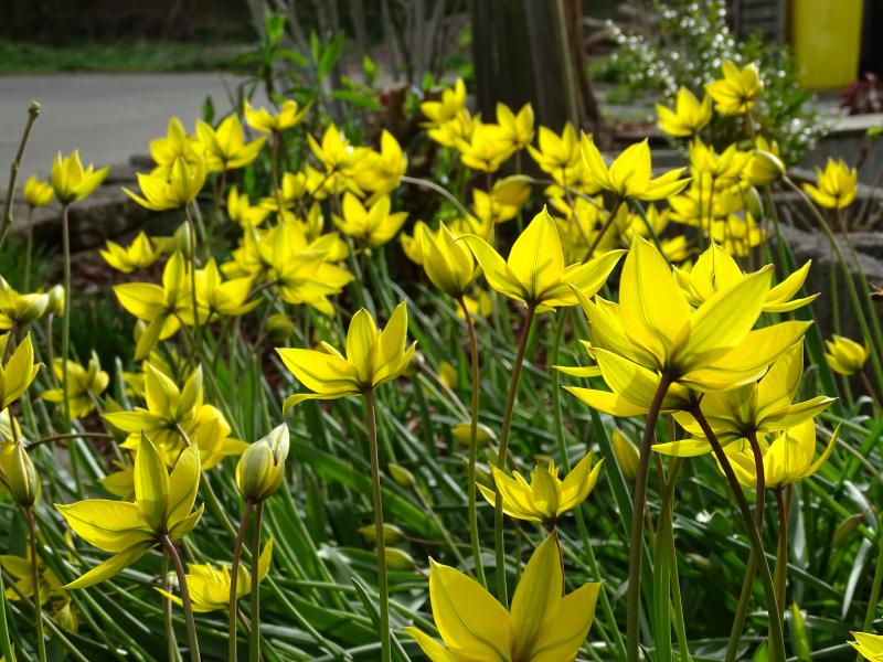 Tulipa sylvestris ist auch eine meiner liebsten Tulpen. Einfach elegant. Ein sehr schöner Bestand bei APO.