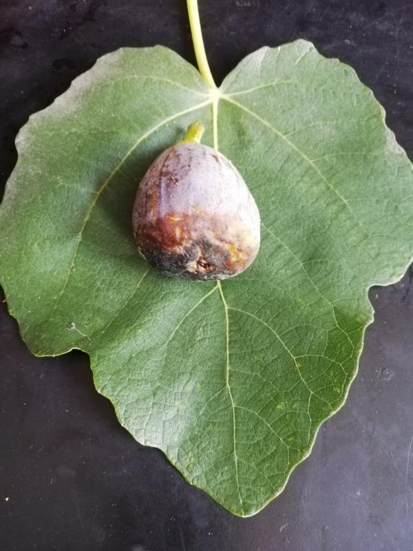 Farbe und Gestalt des Baums ähneln sich sehr, allerdings sind die Blätter bei mir viel gelappter. Ein bisschen Variation je nach Alter des Baums ist aber wohl normal. Ein bulgarischer Experte hat mir bestätigt, dass es sich um eine Brunswick handelt. Interessanterweise scheinen meine Früchte bestäubt zu sein (an Größe der Früchte und Farbe des Fruchtfleisches zu erkennen), was meinen Verdacht bestätigen würde, dass blastophaga psenes den Oberrheingraben erreicht hat.