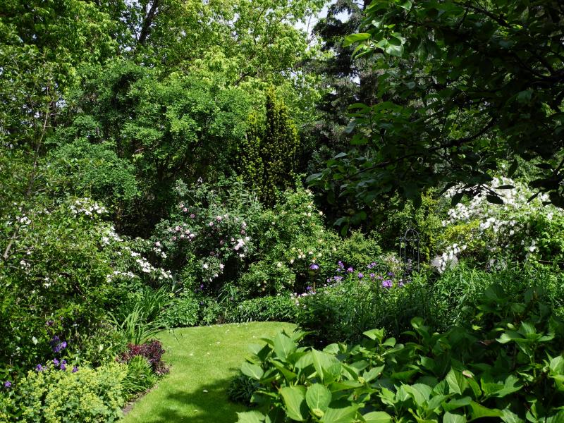 Alchemilla und mehr...Berberis, Cornus, Deutzia, Geranium,Hemerocallis, Iris, Rosen...und Rosenkugel