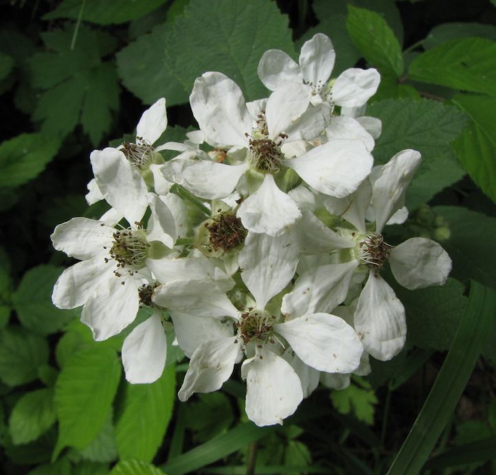 Brombeere Rubus fruticosaDie europäischen Brombeerarten sind keine echten Sträucher, denn die oberirdischen Teile werden gewöhnlich nur zwei Jahre alt. Brombeeren sind Kletterpflanzen (Spreizklimmer) und werden zwischen 50 und 300 cm hoch; die Stengel sind sehr stachelig und verholzen. Die Stacheln dienen dabei als Kletterhilfe und Fraßschutz. An den Trieben, die die Pflanze ausbildet, sitzen wechselständig unpaarig drei-, fünf- und siebenzählige gefiederte, gezähnte Blätter, die im Herbst nicht abgeworfen werden.