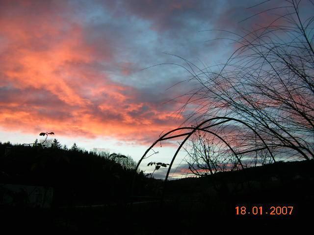 Wünsche auch allen, dass der angekündigte Sturm milder ausfällt als angenommen!Wir hatten um 6h +2° und vorhin dieses Morgenrot: