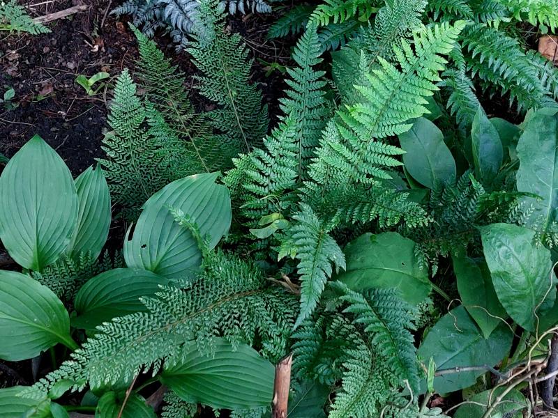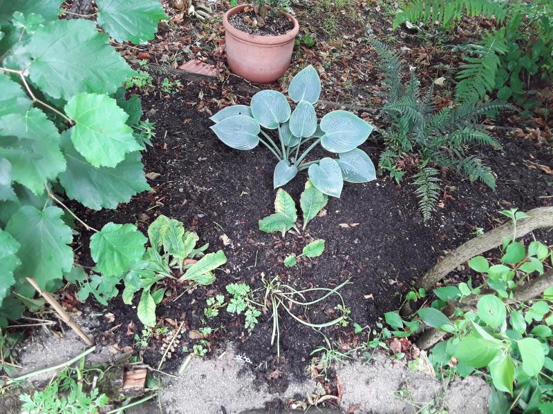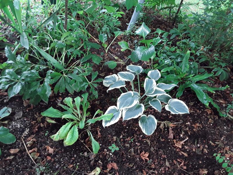 Hosta haben´s hier wg. der Schnecken nicht leicht - hier hat Hosta causa var. normalis neben Polystichum setiferum proliferum und Pulmonaria mit