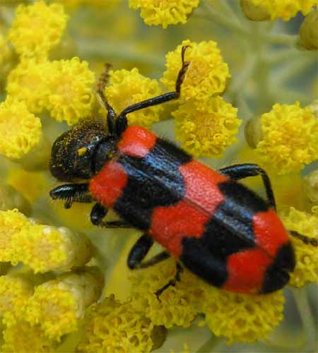 Liebe Lamisia,das ist ein Bienenwolf (Trichodes apiarius).Gruss ChristaKennt ihn wer?