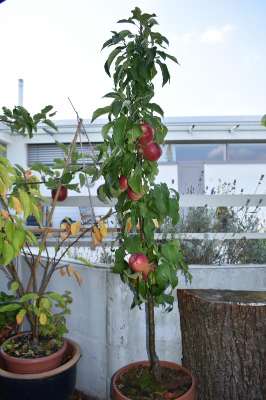 Man kann damit auf jeden Fall optisch interessante Wirkungen erzielen und erschliesst sich damit Pflanzplätze, die ansonsten für Äpfel nicht erschliessbar sind. Ich habe ein bisschen die Hoffnung, dass mit solchen Sorten der Apfel auch wieder in den Vorgarten kommen darf. Säulenapfel statt Konifere :-)