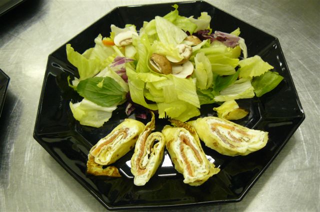 ... soeben bin ich aus der Theaterküche zurück. es gab:Blattsalat mit LachsröllchenFleisch-Gemüse-Spiesschen, Kohlrahmgemüse mit Süssmais, Gries-Gnocci Gebrannte Creme