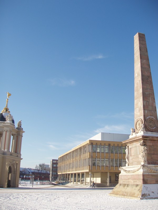 nee, der hat sich vor lachen gebogen, als er unsere winterverkleidung gesehen hatte...War der Obelisk schon so krumm, bevor Ihr Euch getroffen habt?der alte markt in potsdam - unser heutiger startplatz: