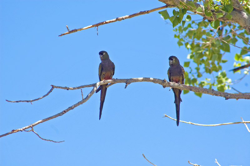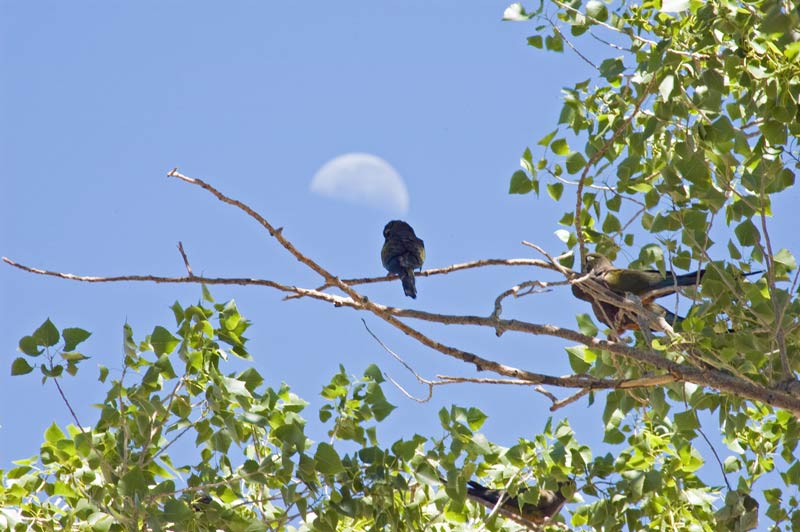 Der hier scheint in den Mond zu schauen. Leider reicht die Tiefenschärfe des Teleobjektivs nicht entfernt aus, um Papagei und Mond scharf aufs Bild zu bekommen.Die Kreischteile aus #243 sind Felsensittiche , cyanoliseus patagonus .